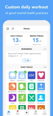 - To work on a set of personalized daily goals that are your daily mental health workout that include good practices like gratitude, breathwork and mindfulness.