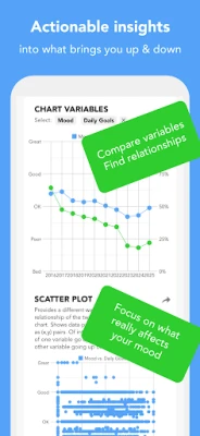 - To track any custom variables you want to understand how it affects your mood, e.g. your hydration, caffeine intake or interactions with a particular friend. You can literally track and analyze anything.